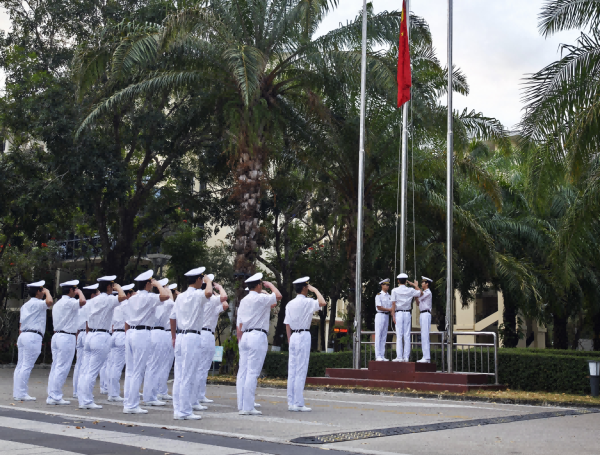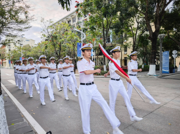 历经两周的严苛训练,新队员们成功肩负起庄严的升旗使命。他们身着整齐服装,步伐矫健地护卫国旗走向升旗台。在激昂的国歌声中,升旗手沉稳拉动旗绳,鲜艳的五星红旗冉冉升起。那一刻,他们眼神中满是自豪与庄重,过往的艰辛化作对国旗的崇高敬意和完成使命的骄傲。